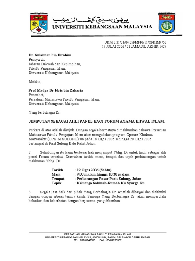 Contoh Surat Jemputan Sebagai Panel Forum Pdf